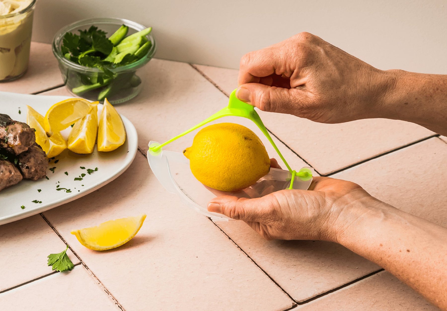 Keep cut produce fresher longer with Savel's innovative food-saving design. The flexible silicone strap stretches securely around halves, wedges, and irregularly cut fruits and vegetables, sealing them from air exposure on a food-safe base. Its transparent design lets you monitor your avocado, citrus, tomatoes, and more without breaking the seal. Perfect for reducing waste and extending the life of your kitchen staples.